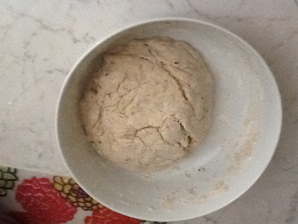 500 gr di farina (di solito faccio una parte di farina 0, una parte di integrale e magari anche di farro, o quello che ho in casa)
