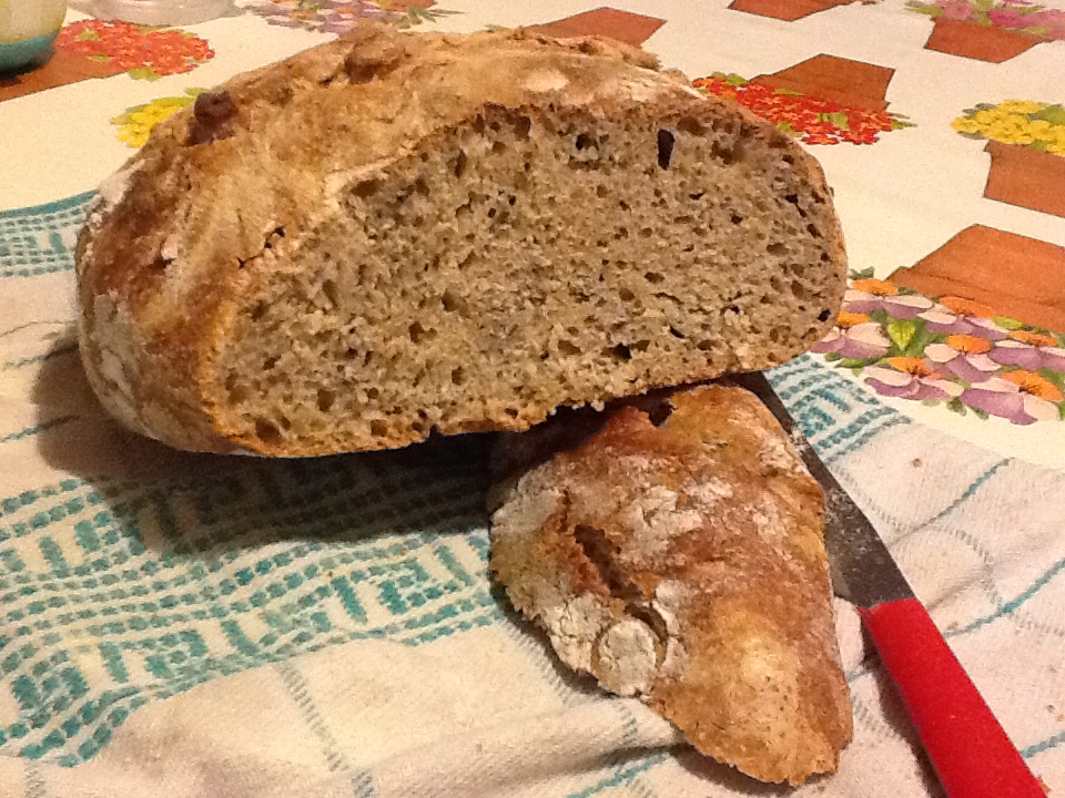 La cosa bella è che questo pane non è da lavorare molto, anzi quasi per nulla, ci vuole solo tempo per la lievitazione, e posso dire con soddisfazione che grazie a questa ricetta non compro più pane da alcune settimane!
